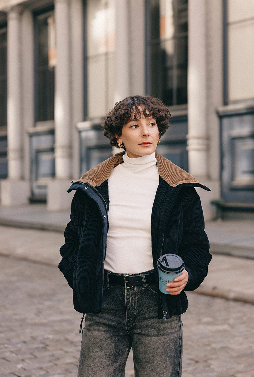 - Model Alyssa Coscarelli is 5’1” and 110 lbs, wearing size XS.