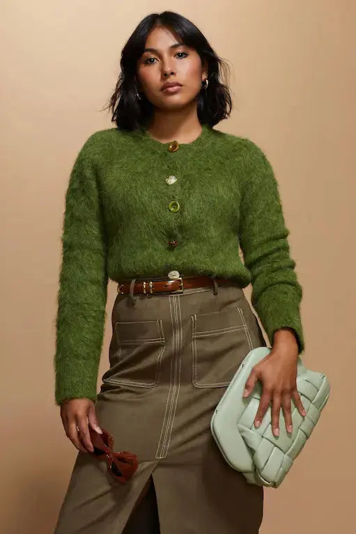Brayden Alpaca Cardigan - Olive Green